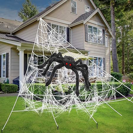 Angelhood halloween decorations giant spider 6.6ft,realistic large hairy spider scary furry spider props for indoor outdoor yard party halloween decor.